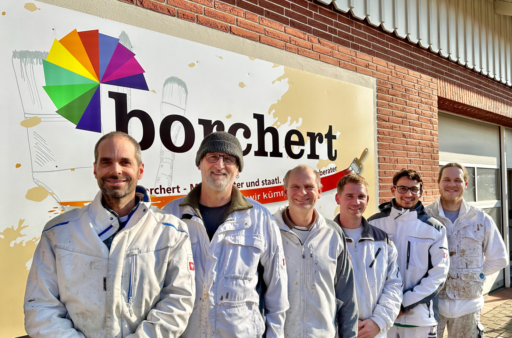 Der Malerbetrieb Borchert wurde im Jahr 1972 von meinem Vater Friedrich Borchert gegründet. Nach externer Ausbildung und Meisterschule habe ich, Jan-Friedrich Borchert, im Januar 2008 die Geschäftsführung übernommen und leite seitdem unseren kleinen aber feinen Betrieb mit zurzeit vier Malergesellen. Firmensitz ist das kleine Örtchen Ildehausen, nahe der Stadt Seesen, direkt an der A7. Weiterhin zum Betrieb gehören noch immer ‚mein alter Herr‘ Friedrich Borchert, der auch mit inzwischen fast 80 Jahren den Pinsel noch nicht aus der Hand legen kann, unsere vier Gesellen, ein Auszubildender und die ‚beste Ehefrau von allen‘, meine Kerstin, welche für sämtliche Bürotätigkeiten zuständig ist.